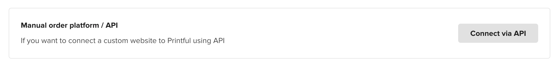 - In your Printful Dashboard -> Stores, click “Connect via API” to create a new store.